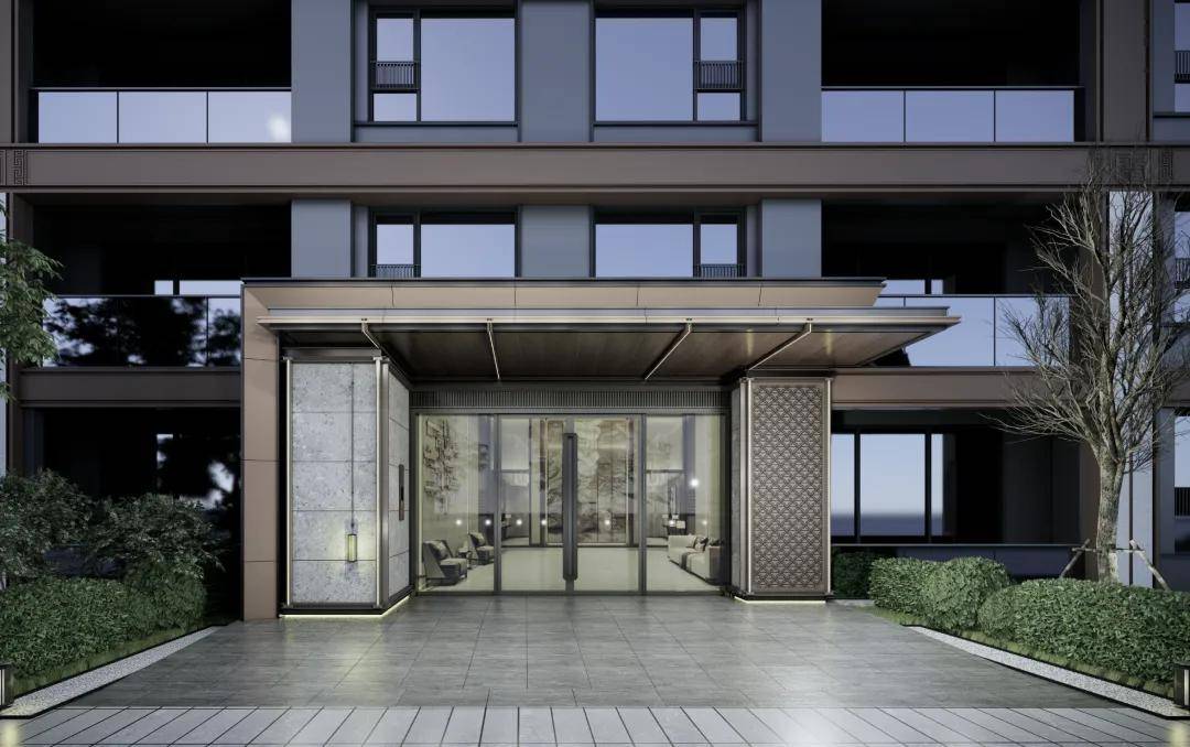 同时项目楼栋之间还坐拥阔绰的楼间距,估计2023年7月份完工,不负这块地盘,“门庭”采用中国古典建建形制的斗拱布局做为粉饰。